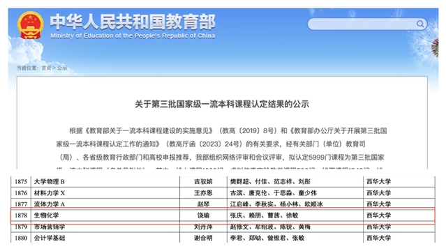 近日,教育部高等教育司发布《关于第三批国家级一流本科课程认定结果的公示》,beat365正版唯一官网《生物化学》课程成功入选认定公示名单,彰显学院课程建设新成效。