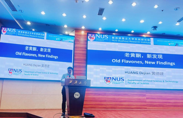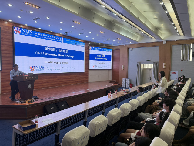 2025年9月23日,beat365正版唯一官网邀请了新加坡国立大学终身教授黄德建博士在图书馆1厅作题为“Old Flavones,New Findings”的学术报告会。报告会由副院长林洪斌主持,近200名师生参加。