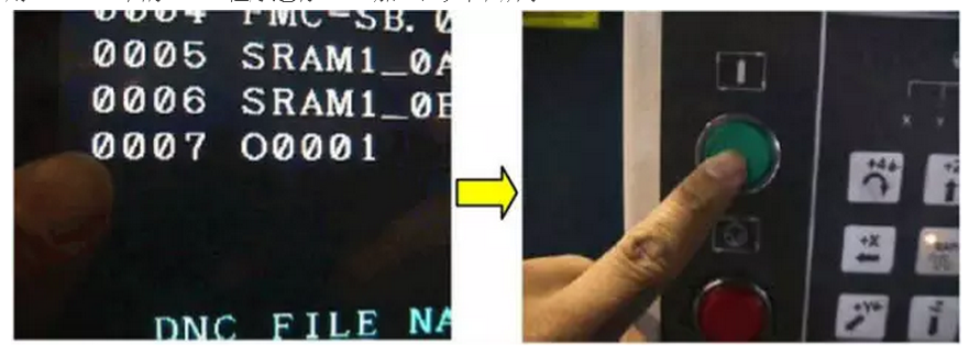 (2)选择待加工程序。键入7(即文件号)→【DNC-ST】,此时 DNC FILENAME变成O0001;