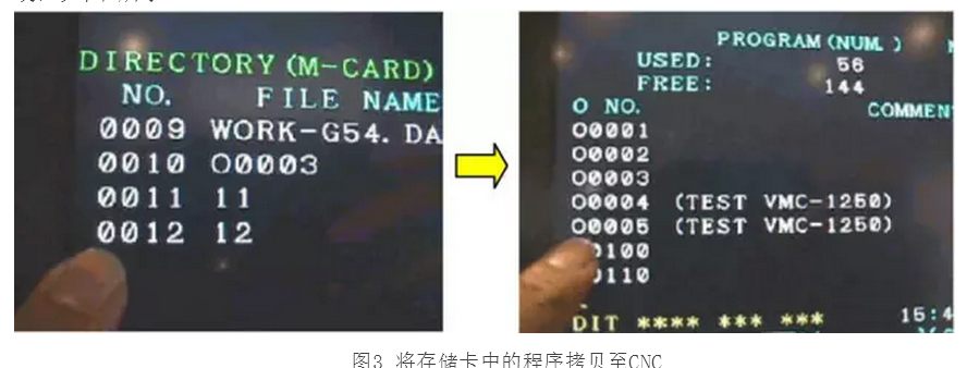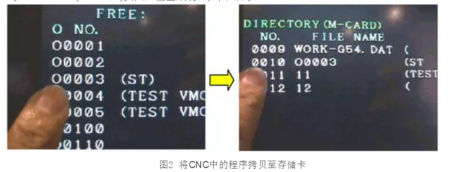 (3)查看存储卡上的新程序。按功能键PROGRAM→扩展键【►】→【CARD】, 看到DIRECTORY(M-CARD)页面,输出成功,如图2所示。