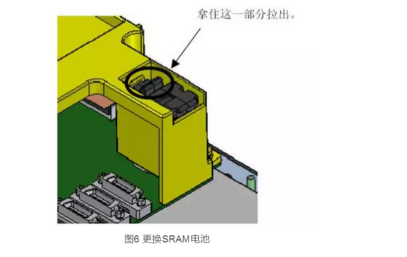 (2)拉出位于CNC 装置背面右下方的电池单元,如图6所示;
